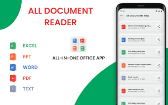 Tüm Belge Okuyucu, basit ve sezgisel bir UI tasarımına sahiptir. Kullanımı ve anlaşılması kolaydır. Bir sunum, bir elektronik tablo, bir kelime işlemci ve daha fazlası gibi çeşitli işlevler sunan bir tüm-in-bir ofis paketidir. Güçlü ve kullanımı kolay bir uygulamadır. PDF, Word, Excel, PowerPoint, Slides, Ppt ve Keynotes dahil olmak üzere tüm dosya türlerini açabilir, görüntüleyebilir ve düzenleyebilirsiniz.